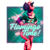 Description: Agent 47 in a flamingo costume on a background of turquoise pool water. The caption reads 'Flamingo Time!' in glowing turquoise letters